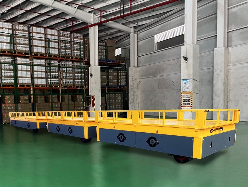 四周带护栏的电动无轨平车是一款灵活高效的厂内搬运设备。它以蓄电池为动力,无需轨道,可在地面自由行驶。四周的护栏能有效防止物料在运输中滑落或碰撞,保障安全。